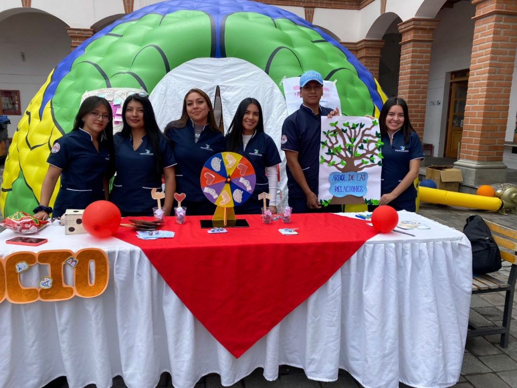 Estudiantes de octavo semestre de la carrera de Psicología participaron en el Sanamente Fest 2025, feria organizada por el Consejo Cantonal de Salud en el Centro Cultural “El Cuartel”. La presencia de la carrera se centró en un stand con actividades lúdicas e interactivas orientadas al cuidado de la salud y al bienestar integral, con enfoque en la promoción de hábitos saludables y el equilibrio entre cuerpo y mente.